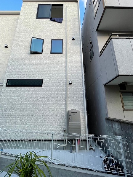 一般住宅の3階のお部屋へ空調設備を設置いたしました。基本的に室内機と室外機が離れた場所に設置しなければならない場合、正確な配置と技術が必要となりますが、この現場では景観を損なわないようまっすぐに配管と配管化粧カバーを取り付けいたしました。1階にしか室外機をおけない場合もご相談ください。